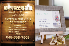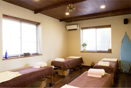 日本オリンピック強化トレーナーを兼任する安心治療院。アロマの香りと南国を思わせる小物がみなさまのご来院をお待ちしております。
